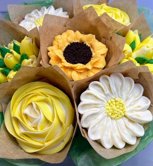 Moiste vanilla cake topped with rich peanut butter infussed butter cream
